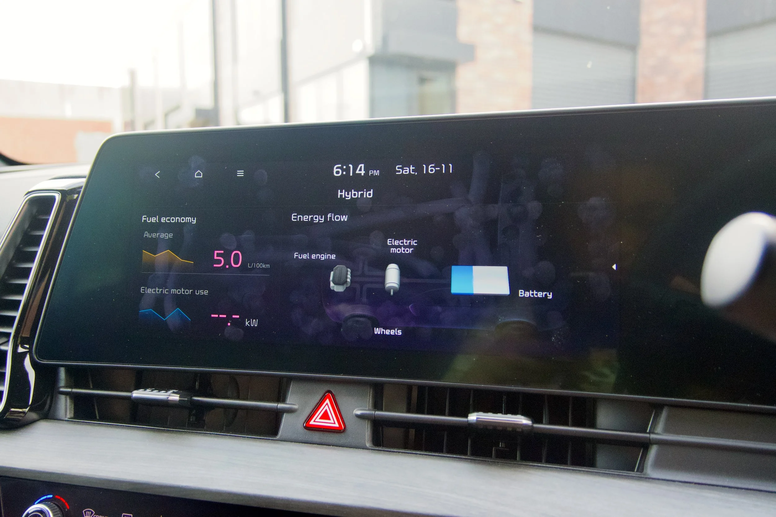 During our real-world test of the Sportage GT-Line Hybrid, we averaged 5.0L/100km over a week of mostly city driving with some freeway stints. That result is almost spot-on with Kia’s official claim of 4.9L/100km, which is well received given we carried a full family load of car seats, prams, and shopping bags throughout the test.