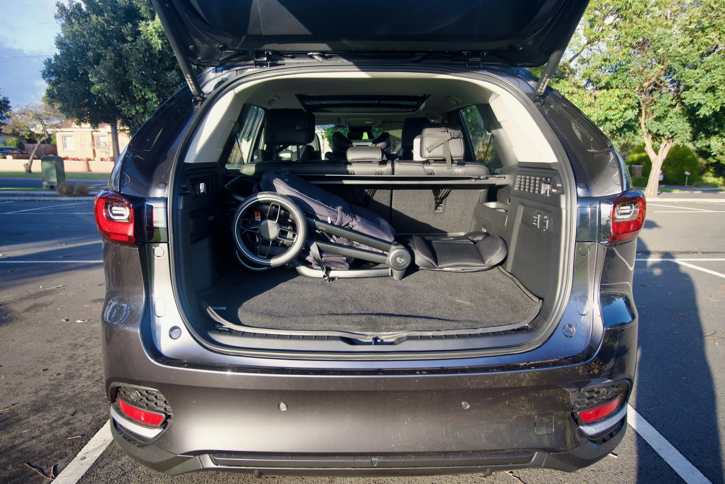 The boot is huge. I had one pram in there, then decided I wanted to use a different pram, so I ended up fitting: two prams, a nappy bag, a backpack, 6 shopping bags and still had room to spare. I was actually blown away. If boot space is high on your priority list, the CX-70 is hard to fault. Also, the hands-free remote tailgate is always a win and a must for a family, in my opinion.