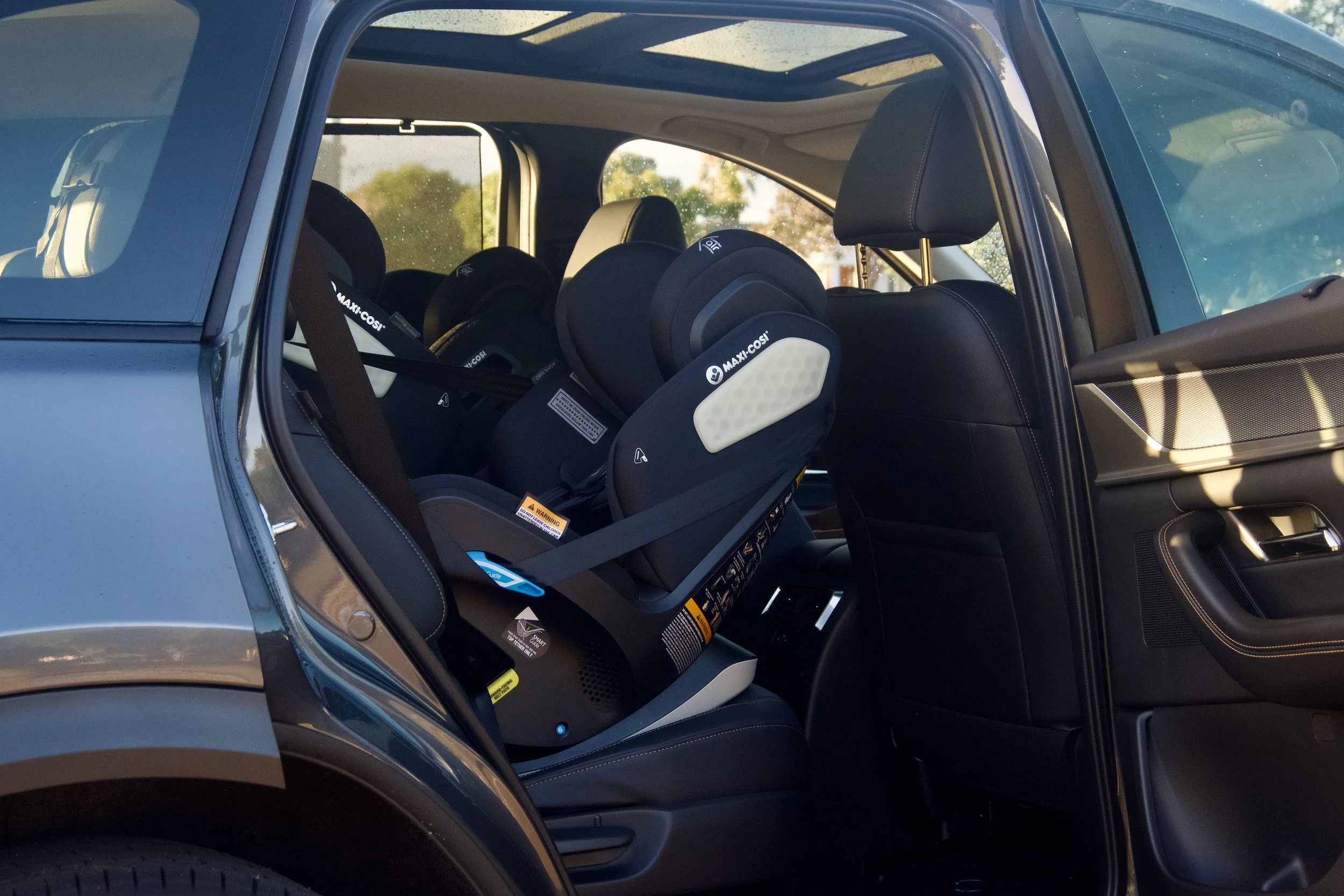 It ticks so many boxes when it comes to day-to-day parenting life. The second row was super roomy. I fit two rear-facing car seats comfortably and still had space for my driving position without compromising. For someone my height (I am 5’’6), the legroom in both the front and second row is excellent.