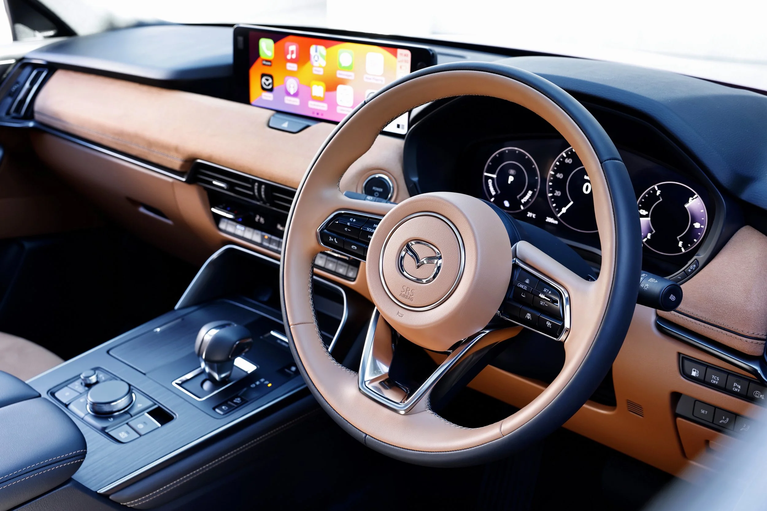 The leather seats, premium finishes, and interior upholstery options like white or tan elevate the CX-80 into luxury territory, while maintaining the functionality families need. Note these also come with their respective seat layout constraints.